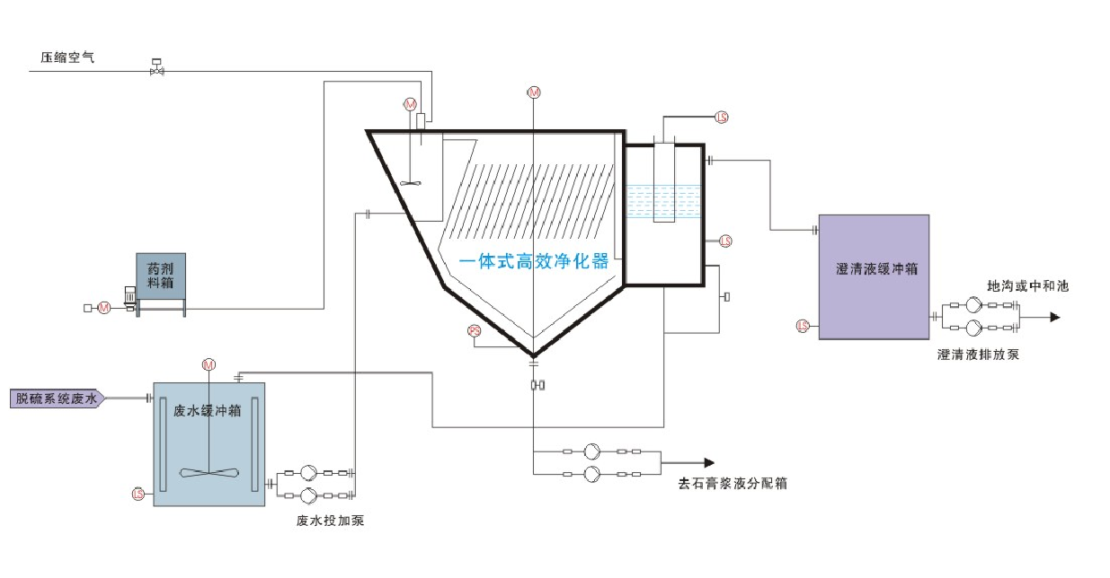 脫硫廢水“一步法”達(dá)標(biāo)排放工藝的核心設(shè)備就是一體式高效凈化器。