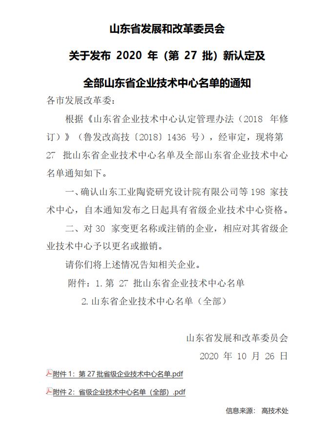 根據《山東省企業技術中心認定管理辦法》(2018年修訂)和《關于組織開展2020年山東省企業技術中心申報工作的通知》的有關規定。10月26日,由省發展和改革委員會組織申報的2020年山東省級企業技術中心擬認定名單公示,煙臺桑尼核星環保設備有限公司成功入選。